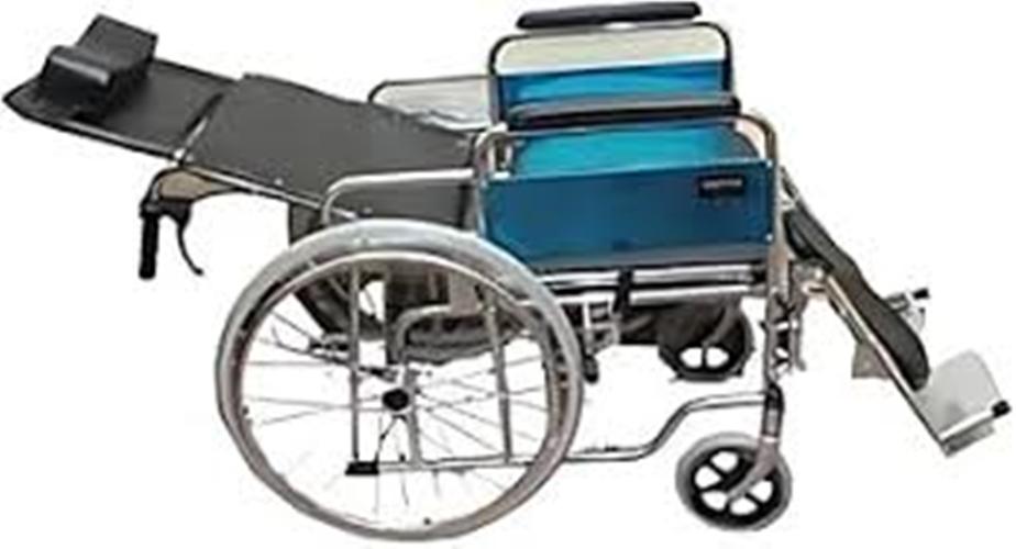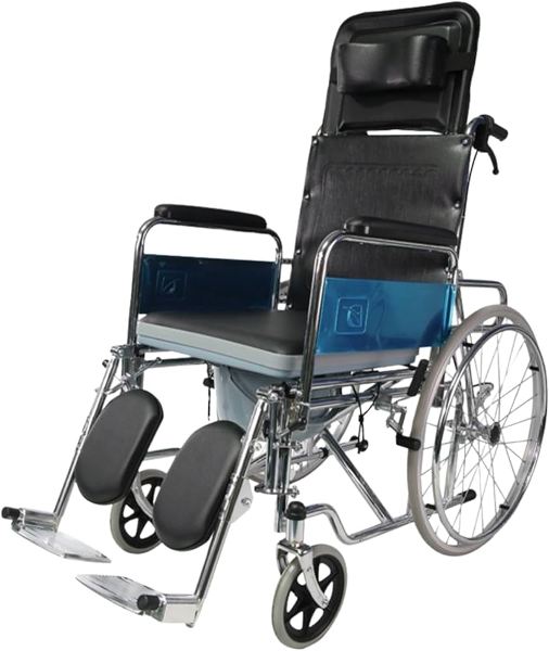 Karma reclining commode Wheelchair rainbow 8 is ideally designed for the elders and the patients having limited mobility. Has 8″ PVC Caster front wheels, and 24″ Solid rear wheels.