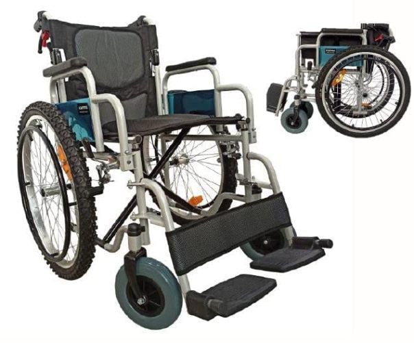 Karma Sunny 9 is a Manual, Foldable, Compact, Self-propelled Wheelchair Made of Mild-steel. It Also Can Be Operated by Care Giver With Its Attendant Driven Features. The Foldable Backrest Makes the Wheelchair Easy to Store and Transport. Detachable Armrests Offer Great Convenience for Transfer From the Wheelchair. Karma Sunny 9 Foldable Wheelchair With Detachable Rear Wheel | Flip-back Armrest | Detachable Footrest | Foldable Backrest | Attended Brake Lock | Extra Wide Rear Wheels | Extra Wide Castor | Easy Transfer